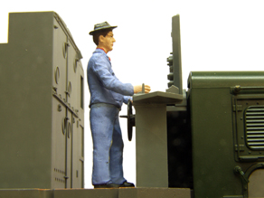 Die Figuren können, ohne die Lokomotive zerlegen zu müssen, durch die Führerstandstüre auf den Sitz gesetzt werden.