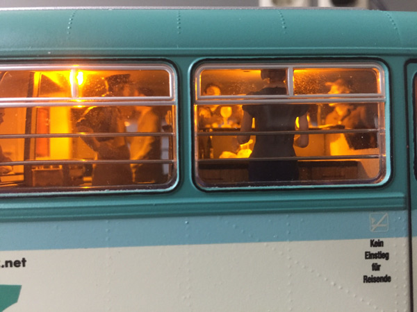 Die für die Silberlinge entworfenen Figuren passen überwiegend auch in den Schienenbus. Tatsächlich gibt es aber auch Figuren die nur in den Schienenbus passen.Die Sets werden derzeit wieder aufgelegt. Das Set VT 98 umfasst 23 Figuren incl. der Fahrerjacke die an der Toilettenwand hängt.